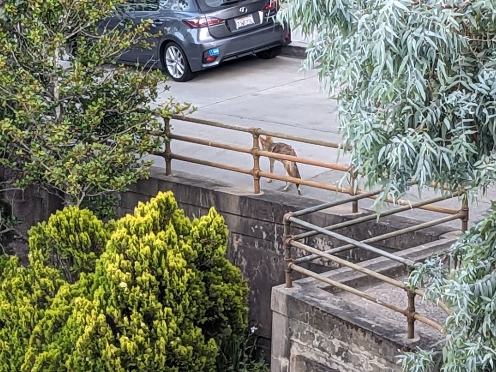 Over the past several years, numerous people in Dolores Heights have seen a female coyote who frequents the area and Dolores Park.  Some (especially those with small dogs and cats) are concerned about coyotes.